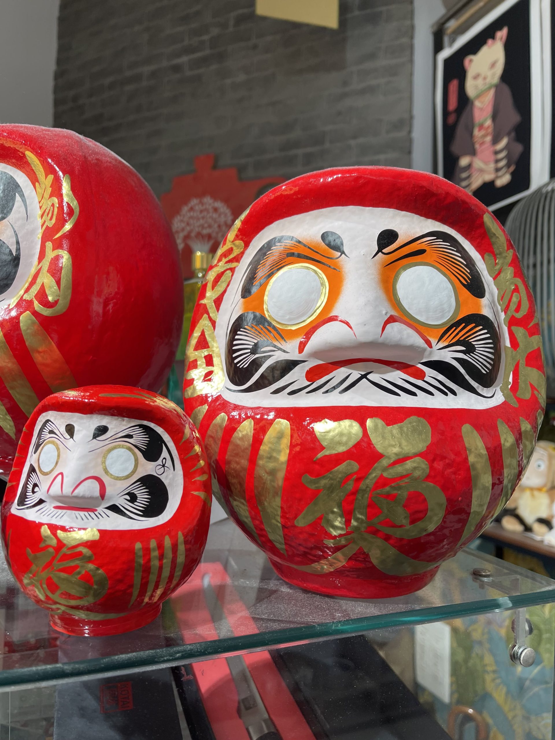 Un objectif > faite l’œil G du Daruma avec un marqueur noir indélébile tout en faisant votre vœux > installez le Daruma à un endroit où vous le voyez tous les jours pour bien encrer en vous la détermination qui est la vôtre d’atteindre votre objectif et avancer avec force vers son accomplissement. Une fois cela obtenu, faite lui son deuxième œil en remerciement.