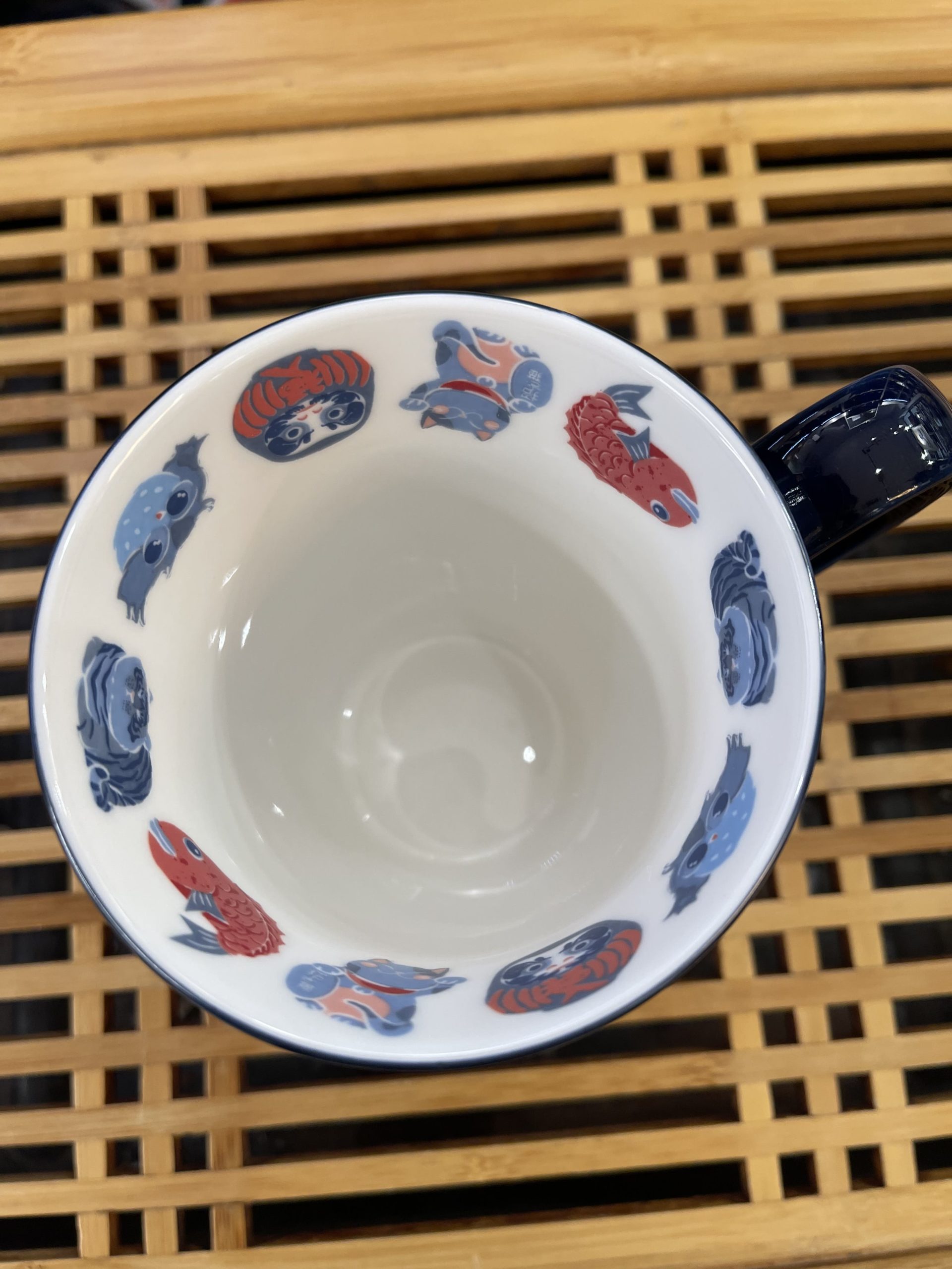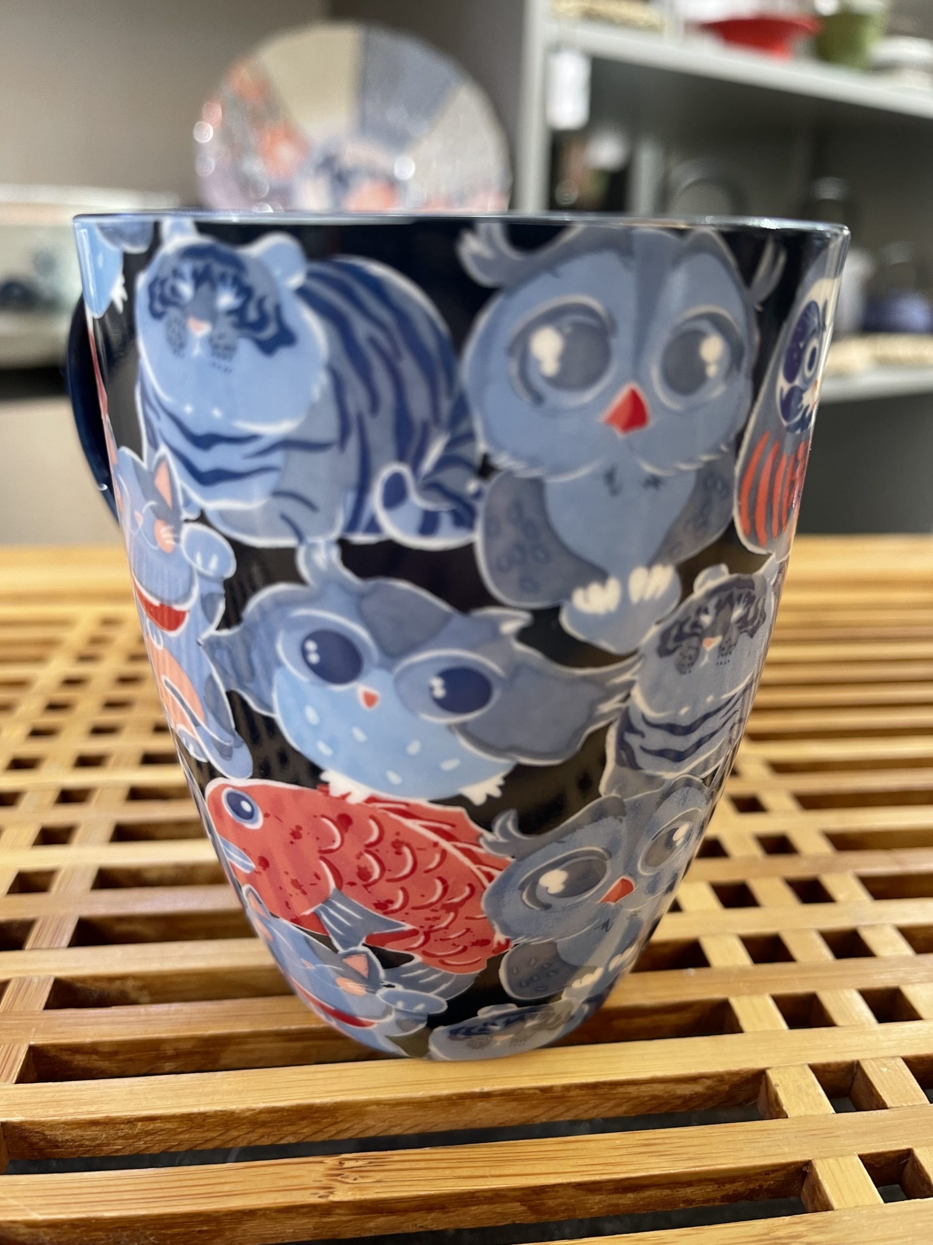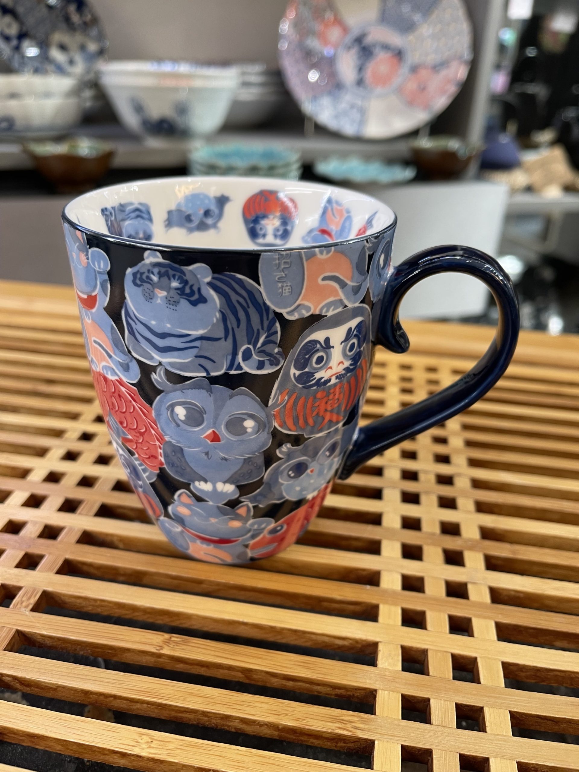 Mug coloré et joyeux qui comporte tous les éléments de bonheur et de protection traditionnel du Japon. Belle proposition cadeau! Une des chose qui me plait le plus dans ce mug se sont les motifs sur le pourtour intérieur haut du mug. C’est vraiment ultra beau!