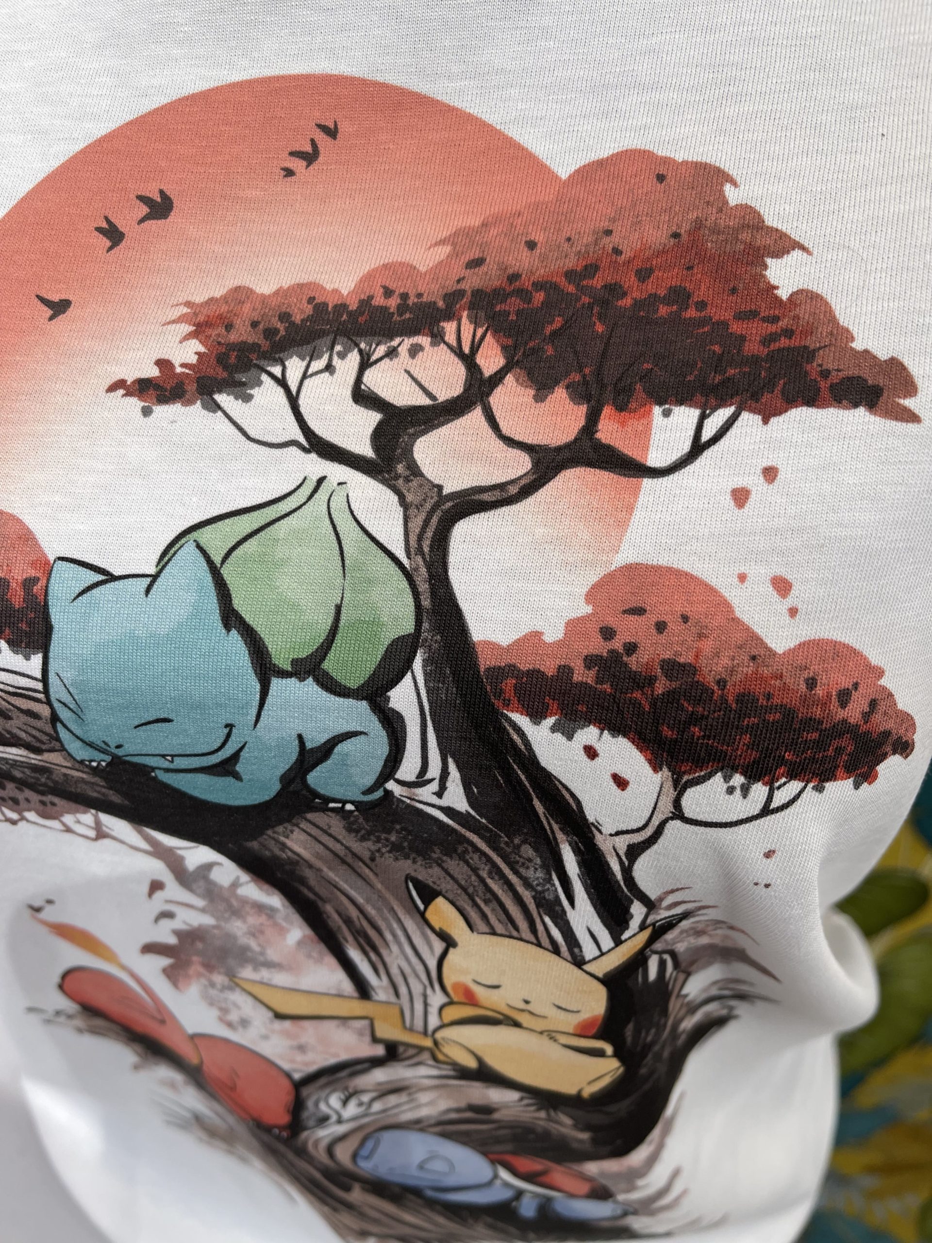 Un design très poétique et ultra doux pour cette représentation de Pokémon faisant une sieste sur un arbre. Un vraie beauté idéale pour un été chaud!